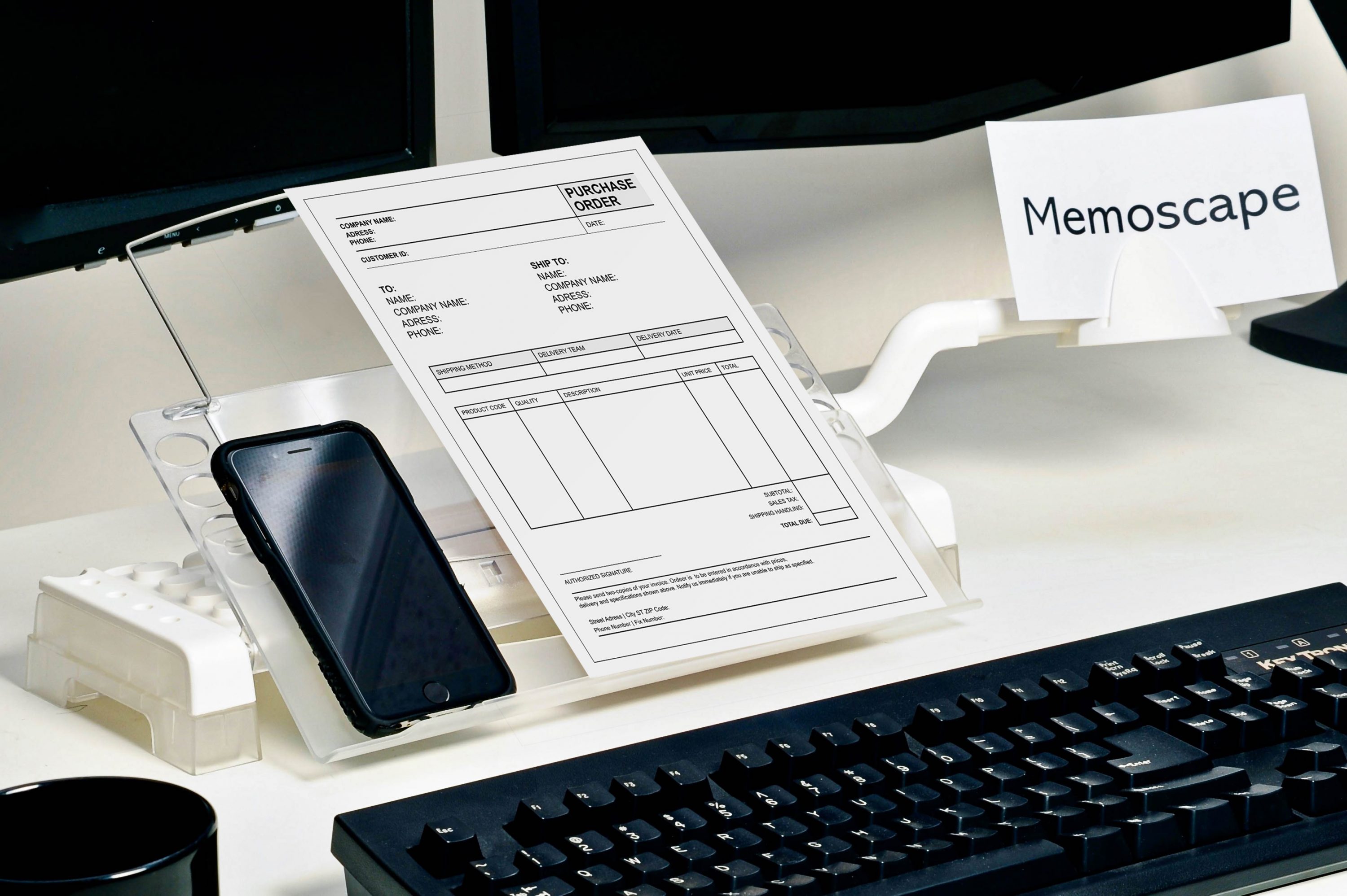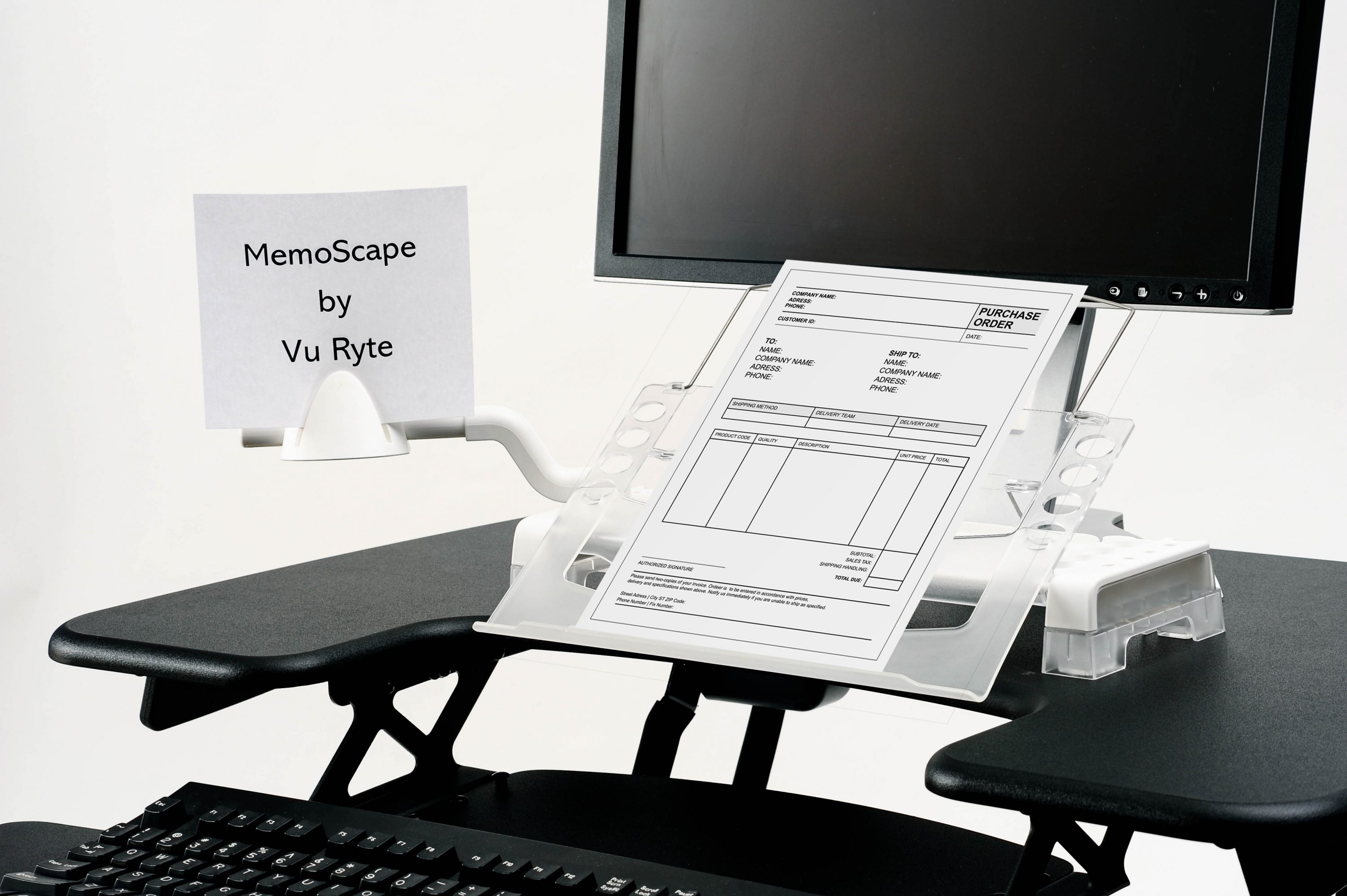 - Positions documents, notes, memos, personal tech, business cards, photos, small books, journals, ergonomically in-line with monitor and keyboard, which can reduce eye, neck, and back strain
